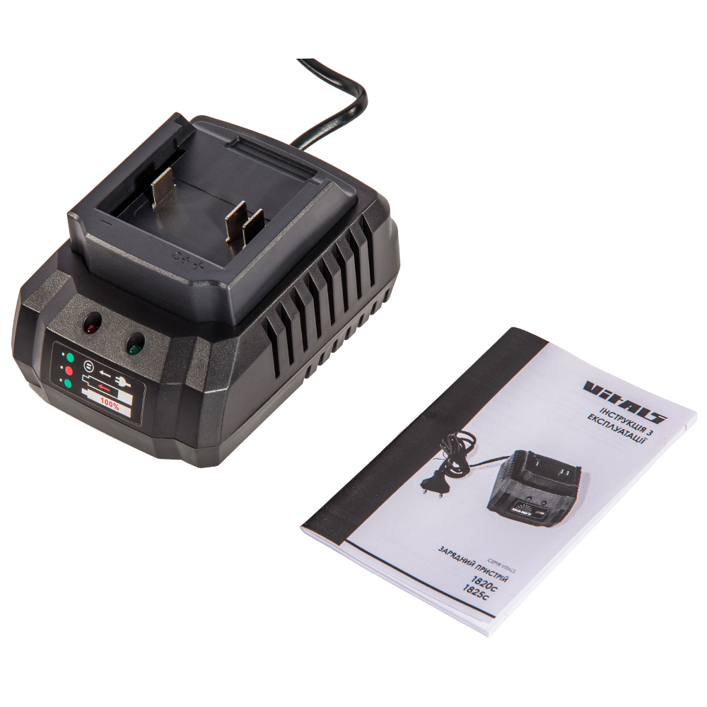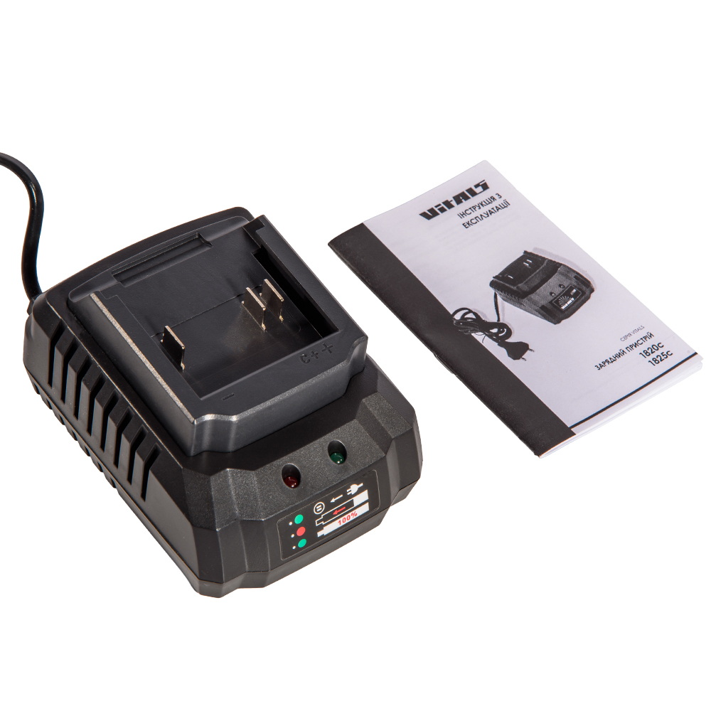 Зарядний пристрій VITALS «1825c» із серії інструментів «М18» призначений для автоматичного заряджання літій-іонних акумуляторів 18 В лінійки інструментів VITALS. Пристрої забезпечують стабільний процес заряджання завдяки інверторній технології, мають компактні розміри, сучасний дизайн та світлову індикацію стану батареї. Вони виготовлені відповідно до сучасних стандартів безпеки та вирізняються надійністю й простотою використання.