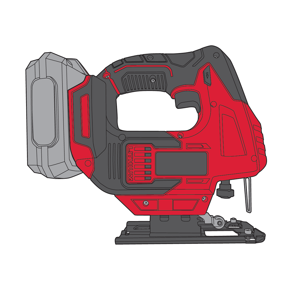 Лобзик имеет регулируемый угол наклона платформы, LED-подсветку и лазерный указатель линии реза, что значительно усиливает точность и комфорт работы. Питание осуществляется от универсальных аккумуляторов SmartLine+ (18 В), что обеспечивает мобильность и автономность.