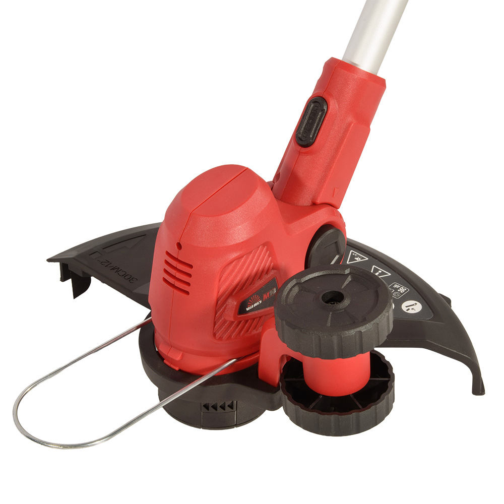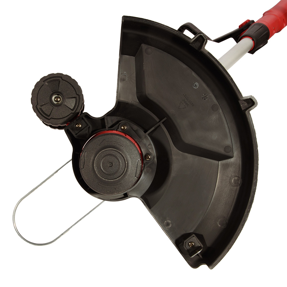 Поворотный механизм косильной головки и ограничительный ролик обеспечивают комфортное скашивание вдоль бордюров, а когда вы работаете рядом с деревьями, металлическая защитная дужка эффективно защищает стволы от повреждений. Телескопическая конструкция штанги позволяет изменять длину триммера и настроить его под индивидуальные потребности оператора.