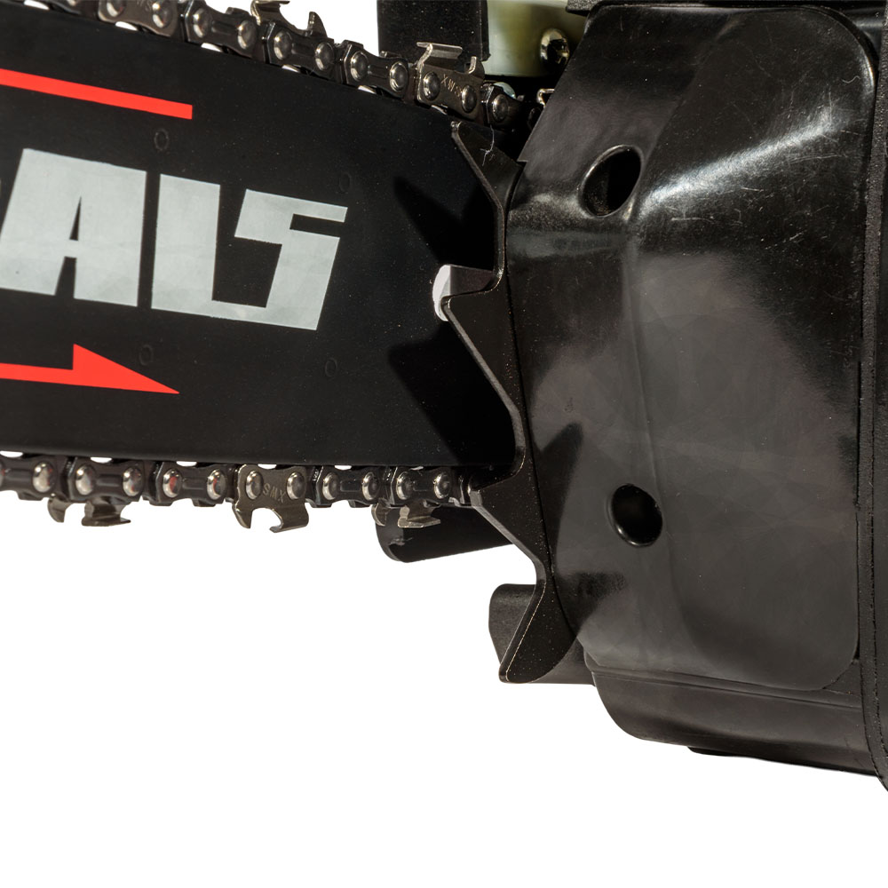 Система торможения цепи — быстро останавливает её в случае обратного удара, предотвращая возможное травмирование пользователя.