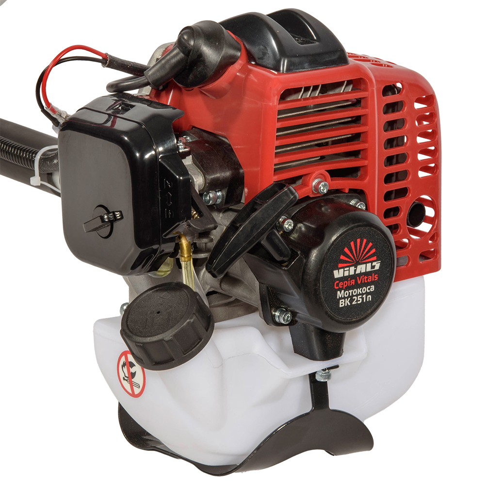 Мотокоса Vitals BK 251n оснащена рядом технических и конструктивных решений, направленных на повышение удобства и эффективности эксплуатации. Сниженный уровень вибрационной нагрузки помогает существенно уменьшить усталость рук, что позволяет работать дольше без ощущения дискомфорта. Система предварительной подкачки топлива («праймер») облегчает запуск двигателя и позволяет быстрее подготовить инструмент к работе.