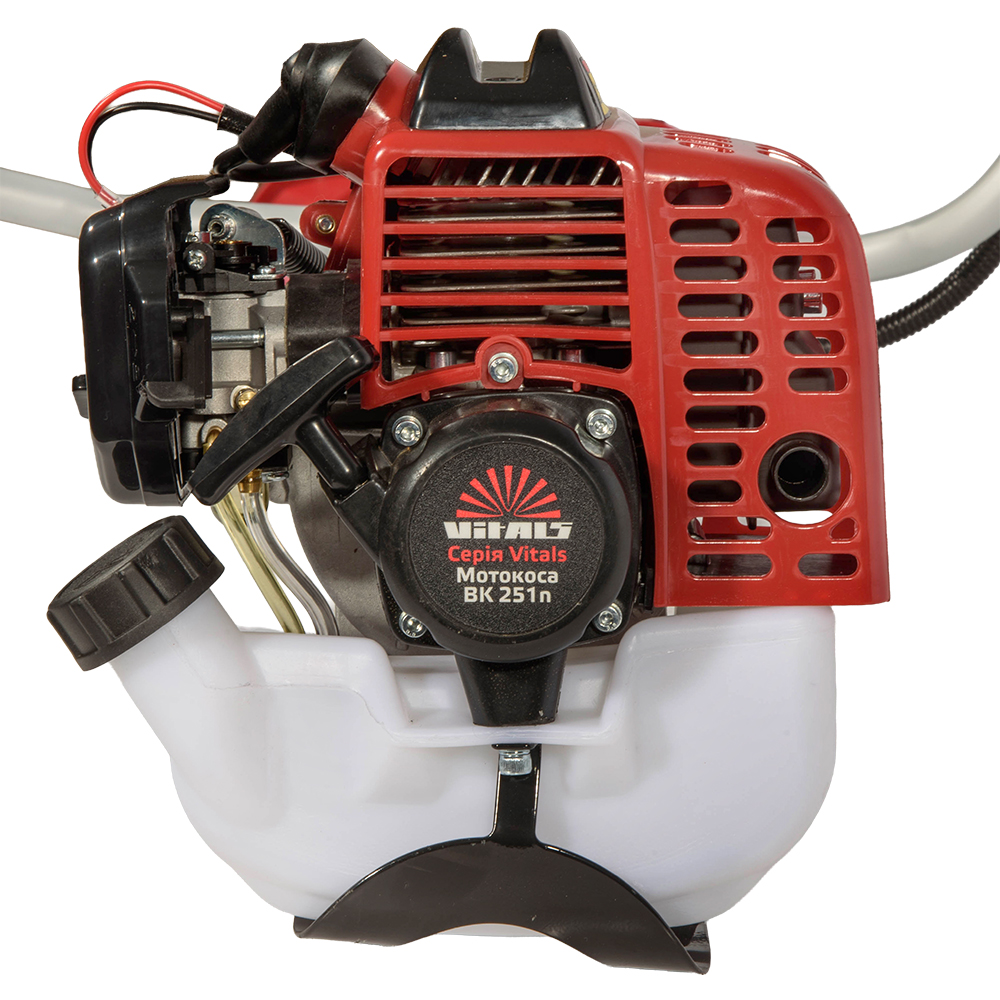 Мотокоса производства Vitals модели BK 251n оснащена двухтактным силовым агрегатом объемом 25,4 см³, который имеет эффективную систему воздушного охлаждения и развивает мощность 1,0 л.с. (0,7 кВт). Двигатель собран из качественных деталей, что гарантирует долговечность и безотказность эксплуатации. Инструмент демонстрирует равномерную и уверенную работу даже при значительных нагрузках, что позволяет одинаково результативно использовать его как на компактных участках, так и на больших площадях с плотной и высокой растительностью.