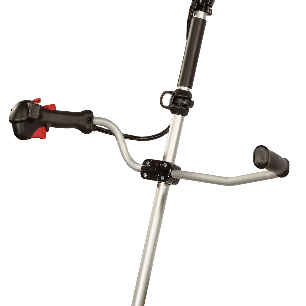 Руківʼя з круїз-контролем у мотокосі оснащене фіксатором положення курка газу, що дозволяє підтримувати постійні оберти двигуна без необхідності постійно утримувати важіль. Це знижує навантаження на руку і підвищує зручність роботи за тривалого косіння, забезпечуючи більш стабільну та рівномірну подачу потужності.