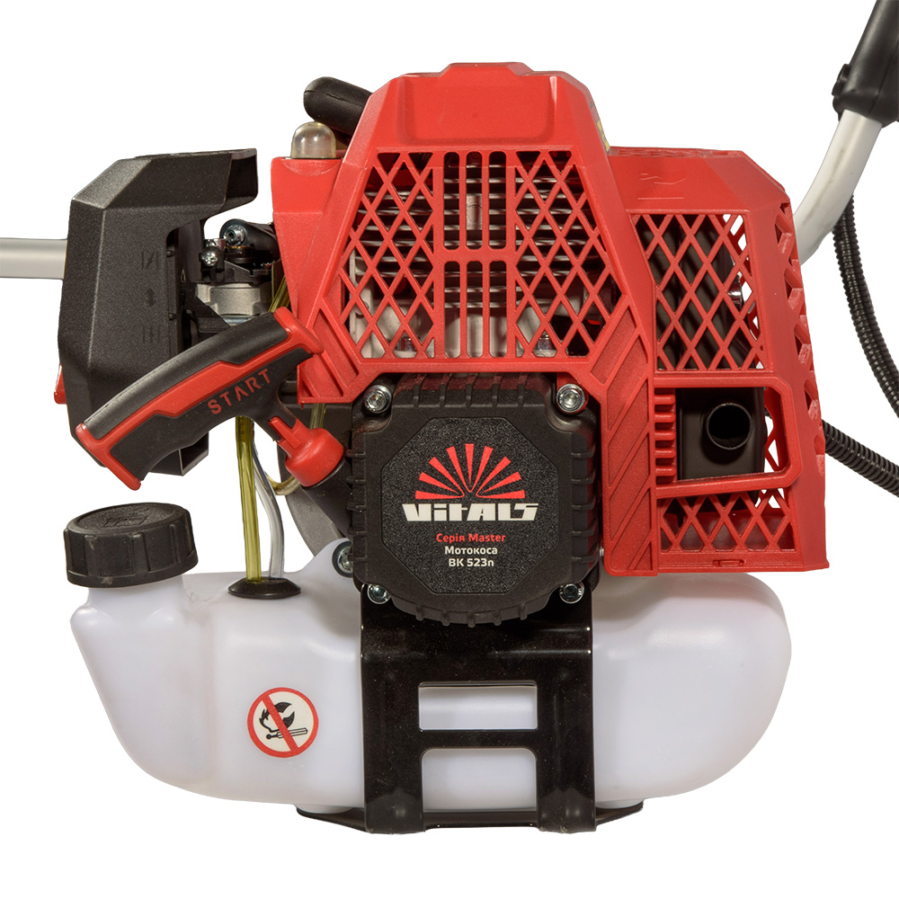 Мотокоса Vitals Master BK 523n оснащена надійним двотактним двигуном із повітряною системою охолодження, робочий об’єм якого становить 52,0 см³, а потужність – 2,0 к.с. (1,5 кВт). Силовий агрегат виготовлений із добірних та зносостійких матеріалів. Нанесення хромованого шару на внутрішні стінки циліндра зменшує силу тертя в циліндро-поршневому вузлі, що позитивно впливає на довговічність механізму та подовжує термін його безвідмовної роботи.