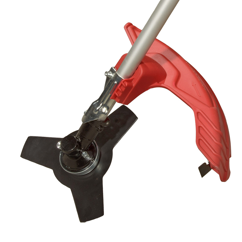 • великий пластиковий кожух із нерухомим ножем, що обмежує довжину жилки, підвищує безпеку користувача та захищає від відлітаючих уламків.
