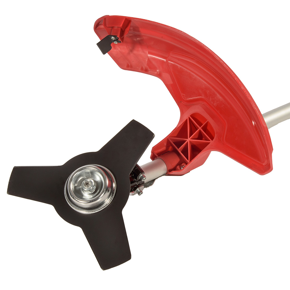 Зовнішній корпус разом із захисним екраном виконані з ударостійкого ABS-пластику, що надійно захищає силовий вузол від можливих механічних впливів. Крім того, така конструкція підвищує безпечність роботи, захищаючи оператора від дотику до нагрітих деталей і зменшуючи ризик травмування частинками твердих матеріалів, які можуть відлітати під час косіння.